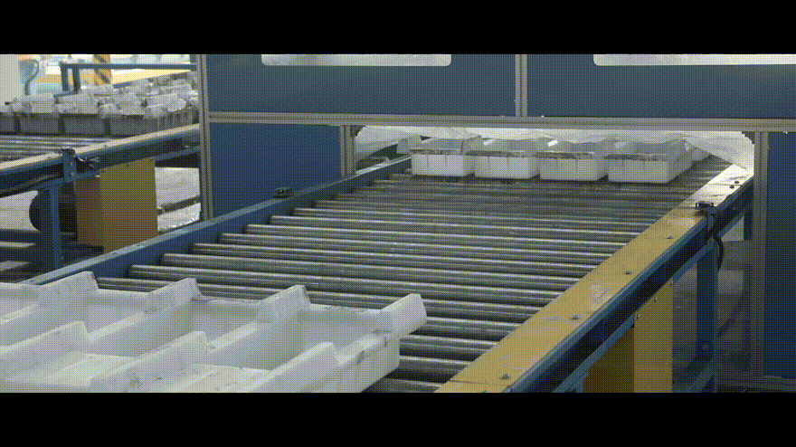 托盤先進入自動鼠籠式翻轉機,使托盤正面朝上,然后由自動輸送線輸送至脫模劑自動噴涂站,通過流量控制可實現(xiàn)脫模劑均勻高效噴涂。再由輸送線進入布料流程,開始循環(huán)下循環(huán)施工。